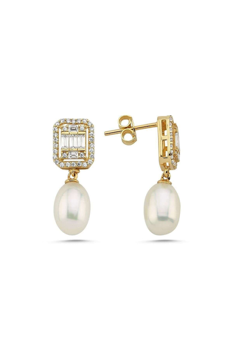 Product name: 14K Gold 9 mm Baget Taş Doğal Pearl Sallantı Küpe