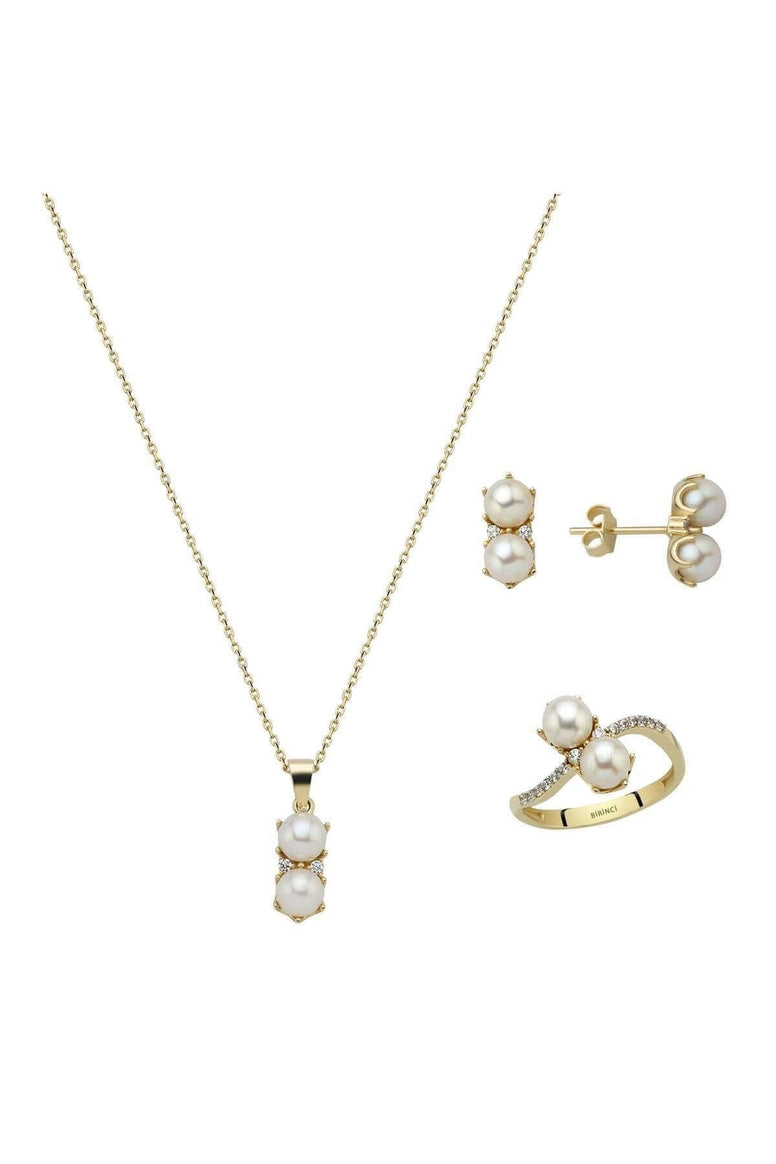 İkili İnci Küpe Kolye Yüzük Üçlü Set | | Birinci1926