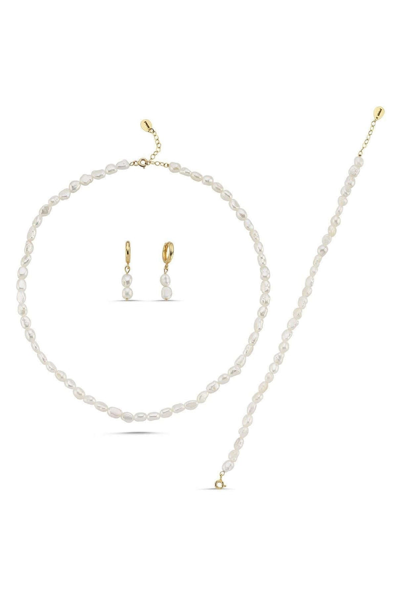 Yassı Barok İnci Kolye Bileklik Küpe Üçlü Set | | Birinci1926