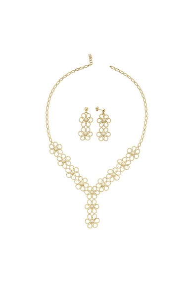 Çiçek Desenli Doğal İncili Kolye Küpe İkili Set | | Birinci1926