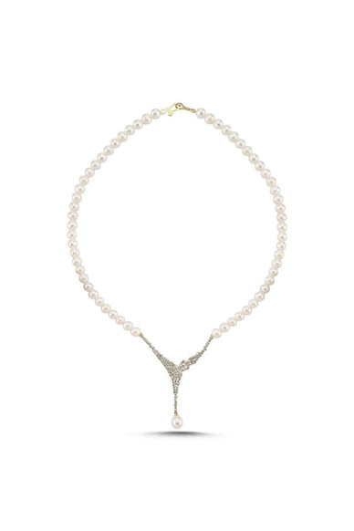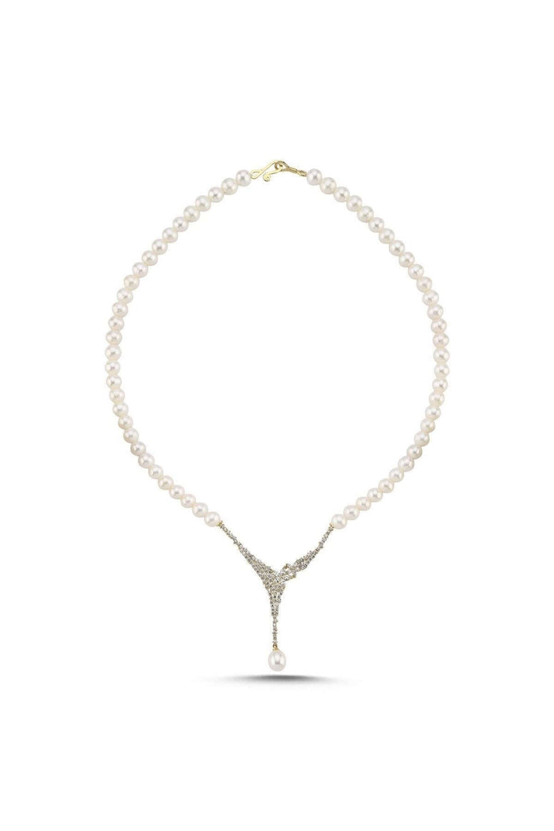 Çiçek Detay Zirkon Taşlı Doğal İnci Kolye | | Birinci1926
