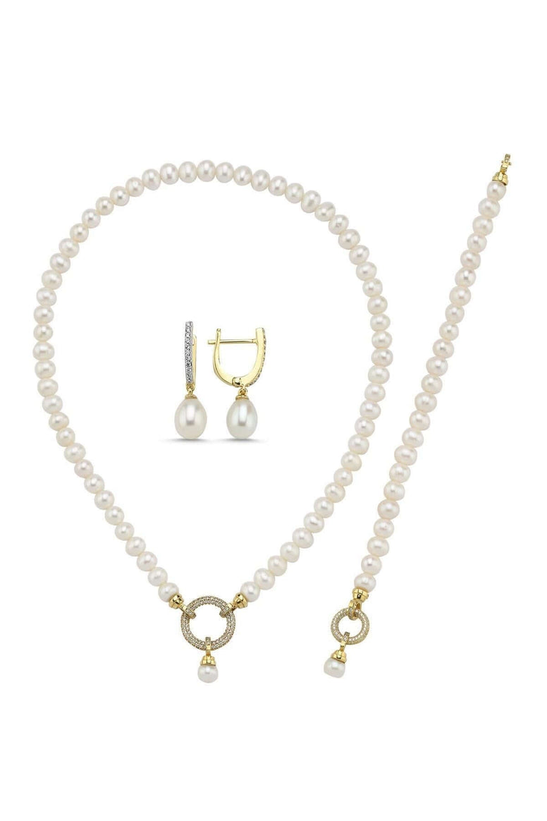 Halka Kilitli Doğal İnci Kolye Bileklik Küpe Üçlü Set | | Birinci1926
