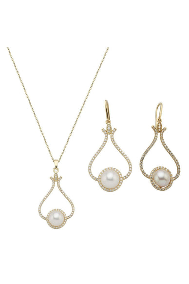 Lale Stone Natural Pearl Earring Necklace Double Set