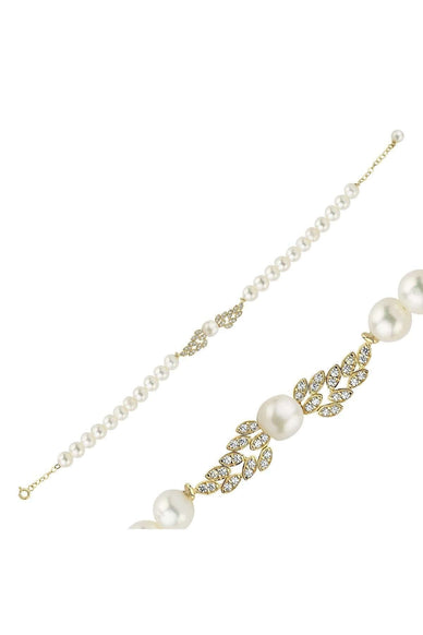 Product name: 14K Gold 6 mm Yaprak Taşlı Doğal Pearl Bileklik