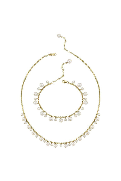 Natural Pearl Dangling Necklace Bracelet Double Set