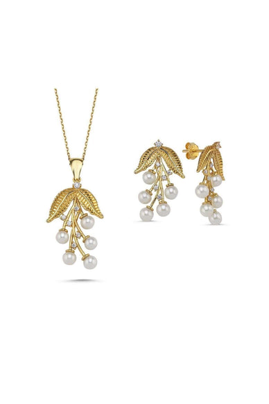 Zeytin Dalı Doğal İncili Küpe Kolye İkili Set | | Birinci1926