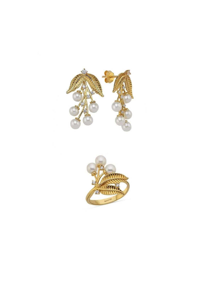 Zeytin Dalı Doğal İnci Küpe Yüzük İkili Set | | Birinci1926