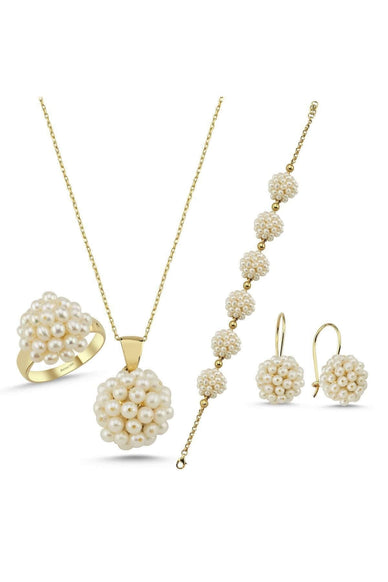 Prenses Model Doğal İnci Küpe Kolye Bileklik Yüzük Dörtlü Set | | Birinci1926