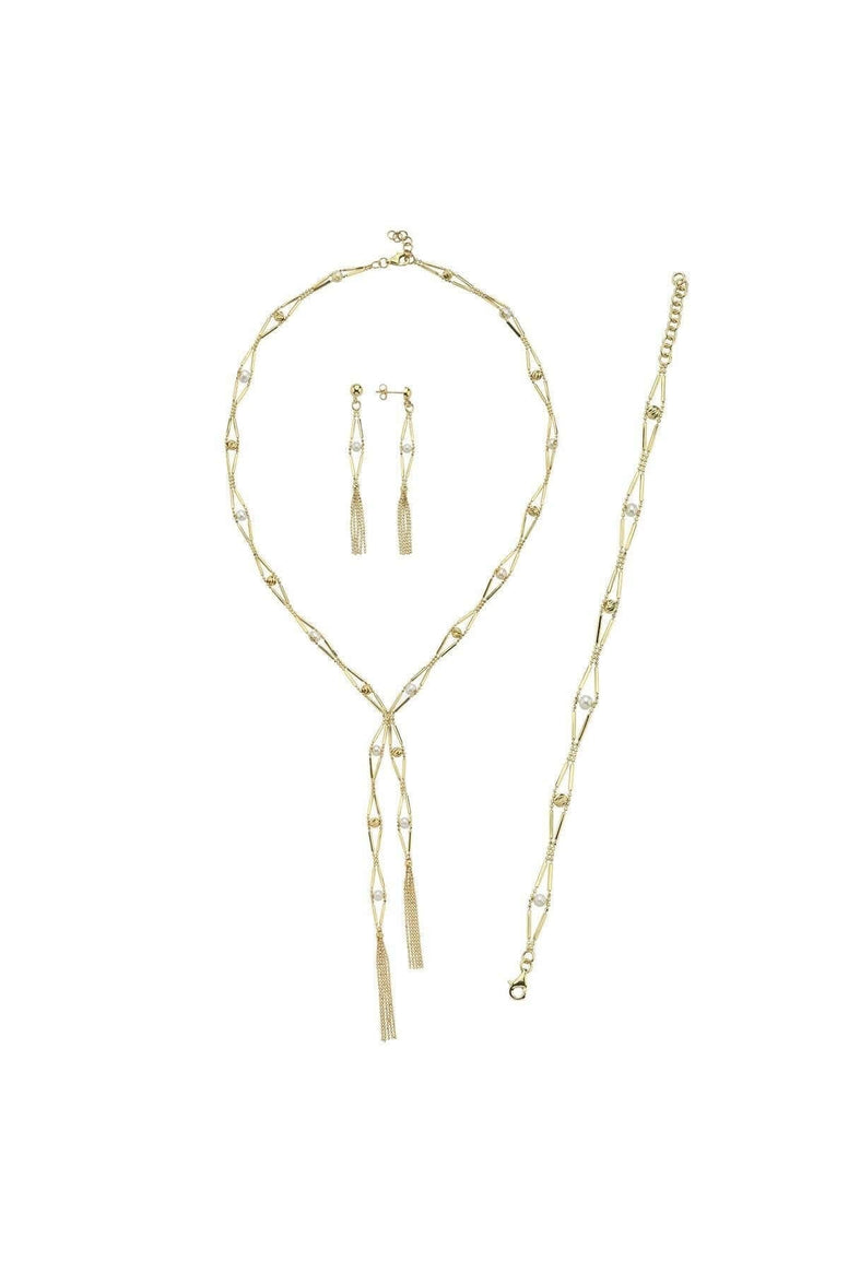 Slice of Baklava Doğal İncili Küpe Kolye Bileklik Üçlü Set | | Birinci1926