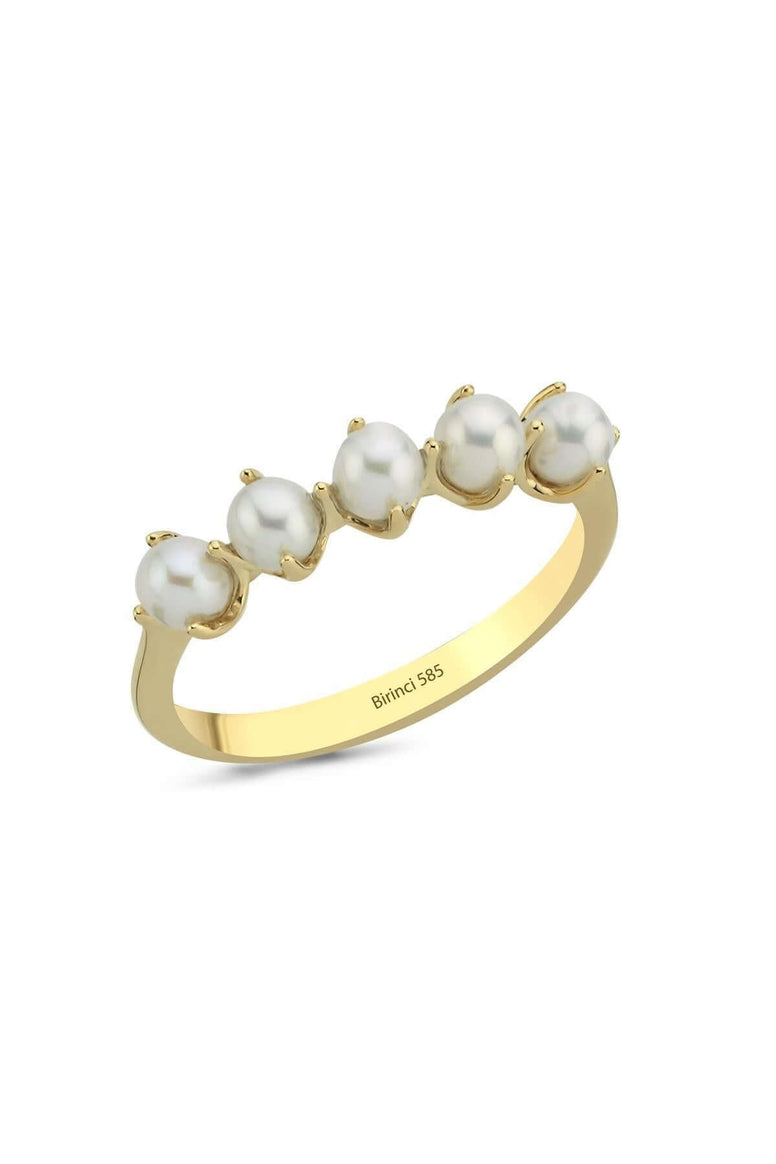 Product name: 14K Gold 3 mm İnce Tırnak Beş Doğal Pearlli Yüzük