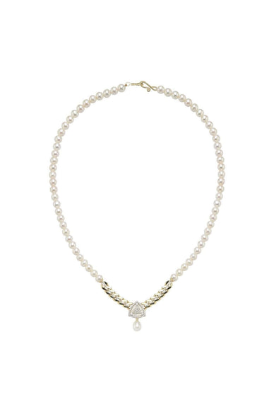 Triangle Model Baguette Stone Natural Pearl Necklace