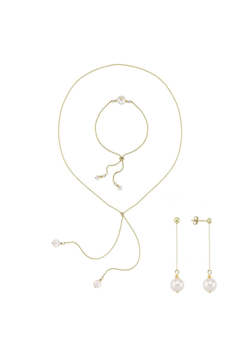 Asansörlü Doğal İnci Küpe Kolye Bileklik Üçlü Set | | Birinci1926