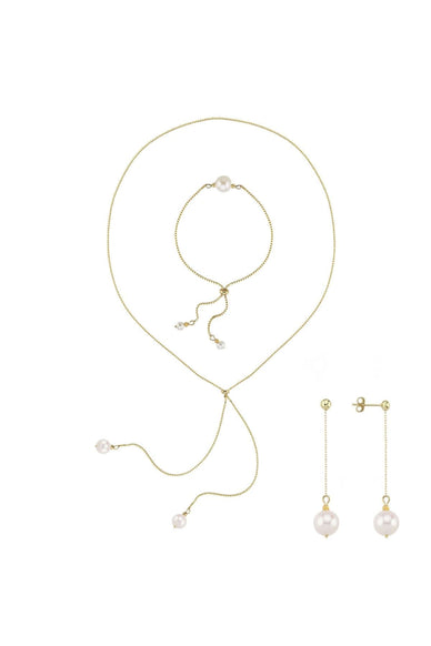 Adjustable Natural Pearl Earring Necklace Bracelet Triple Set