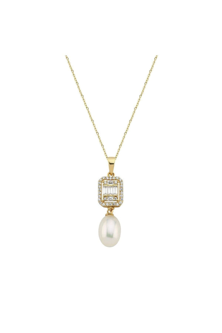 Product name 14K Gold 9 mm Baget Taş Doğal Pearl Sallantı Kolye