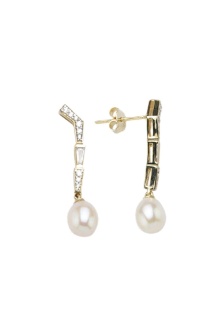 Baget Zirkon Taşlı Doğal İnci Küpe | | Birinci1926
