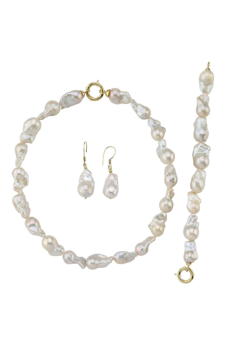 Baroque Pearl Necklace Bracelet Earring Triple Set