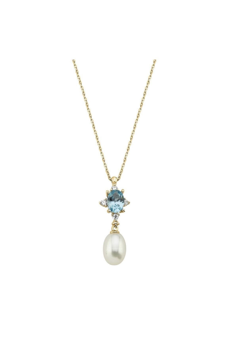 Product name 14K Gold 9 mm Mavi Renk Taşlı Doğal Pearl Sallantı Kolye