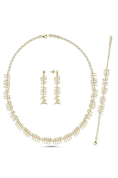 Bone Model Natural Pearl Earring Necklace Bracelet Triple Set