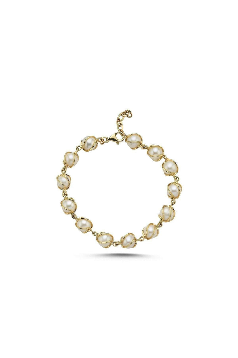 Product name 14K Gold 8 mm Kafesli Doğal Pearl Bileklik
