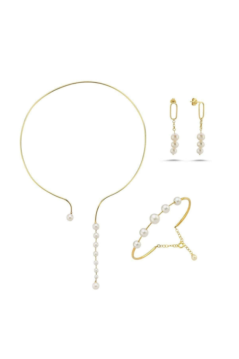 Sallantılı Doğal İnci Küpe Kolye Bileklik Üçlü Set | | Birinci1926