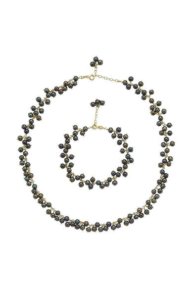 Dangling Natural Pearl Necklace Bracelet Double Set