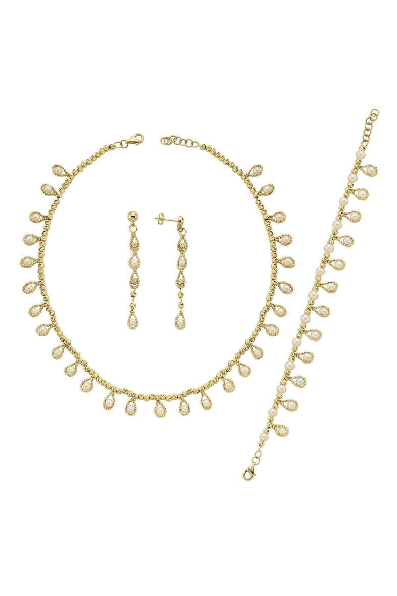 Dorica Bead Dangling Drop Natural Pearl Earring Necklace Bracelet Triple Set