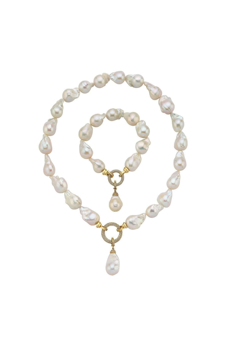 Hoop Clasp Baroque Natural Pearl Necklace Bracelet Double Set