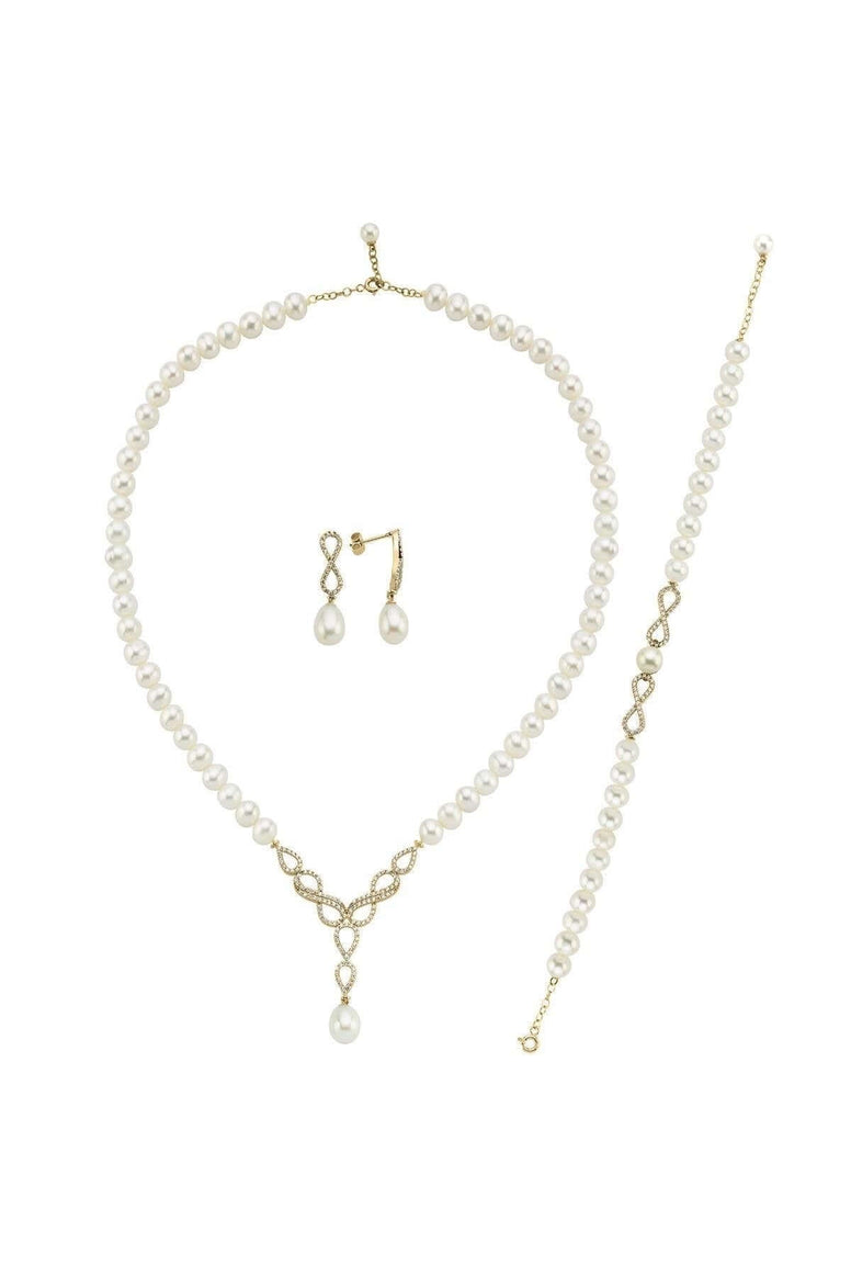 Sonsuzluk Taşlı Doğal İncili Küpe Kolye Bileklik Üçlü Set | | Birinci1926