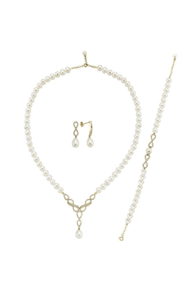 Infinity Stone Natural Pearl Earring Necklace Bracelet Triple Set