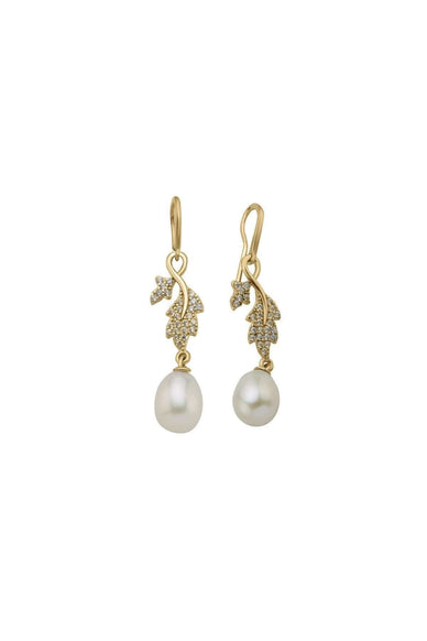 Product name: 14K Gold 8 mm Yaprak Taşlı Doğal Pearl Sallantılı Küpe
