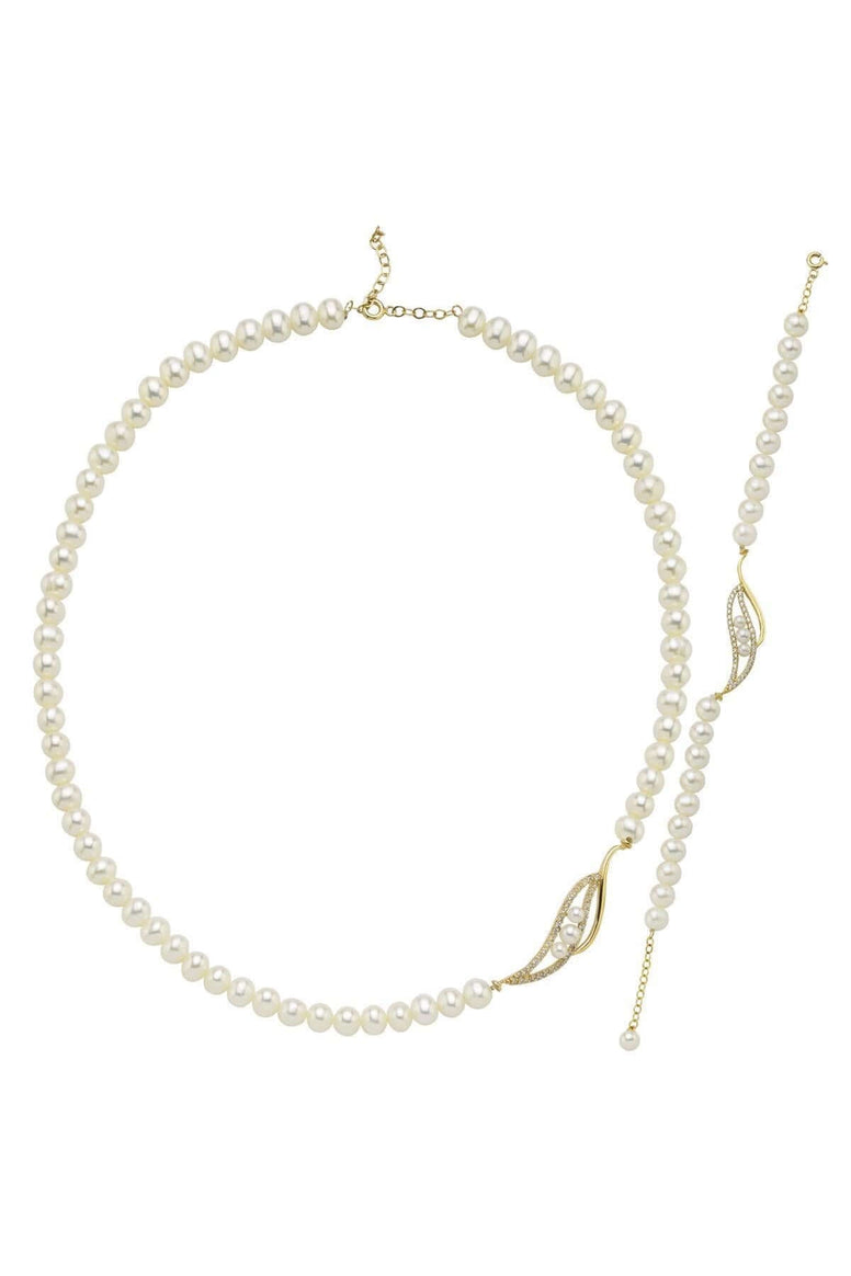Leaf Stone Natural Pearl Necklace Bracelet Double Set