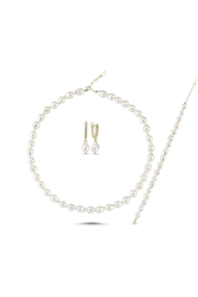 Sıralı Damla Doğal İnci Kolye Bileklik Küpe Üçlü Set | İnci Set | Birinci1926
