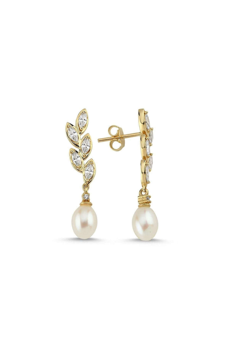 Product name: 14K Gold 6 mm Doğal Pearl Yaprak Taşlı Küpe