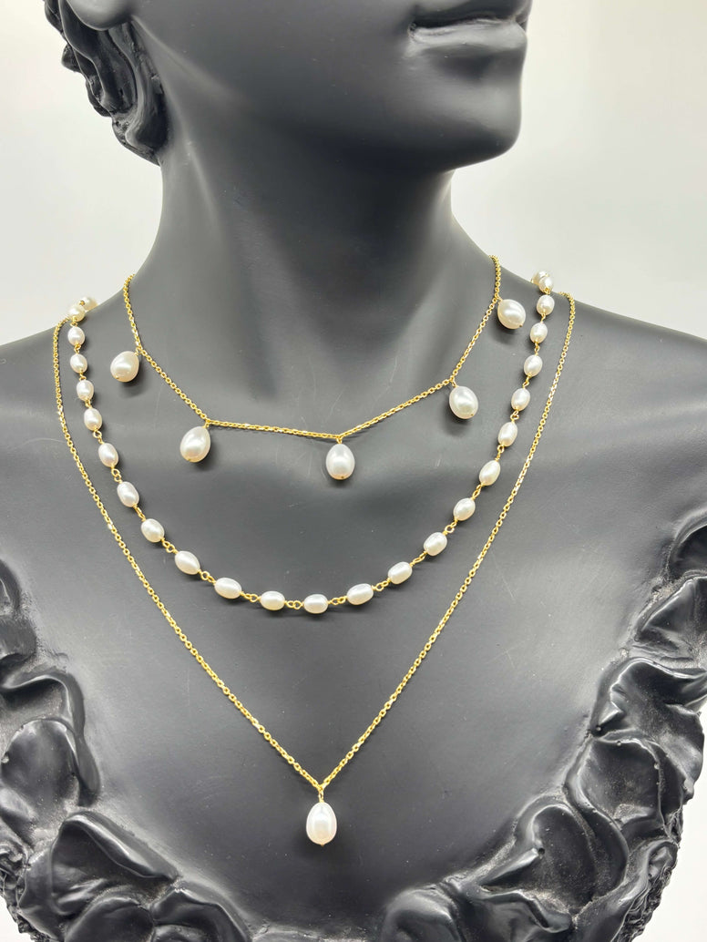 Natural Pearl Triple Necklace Set