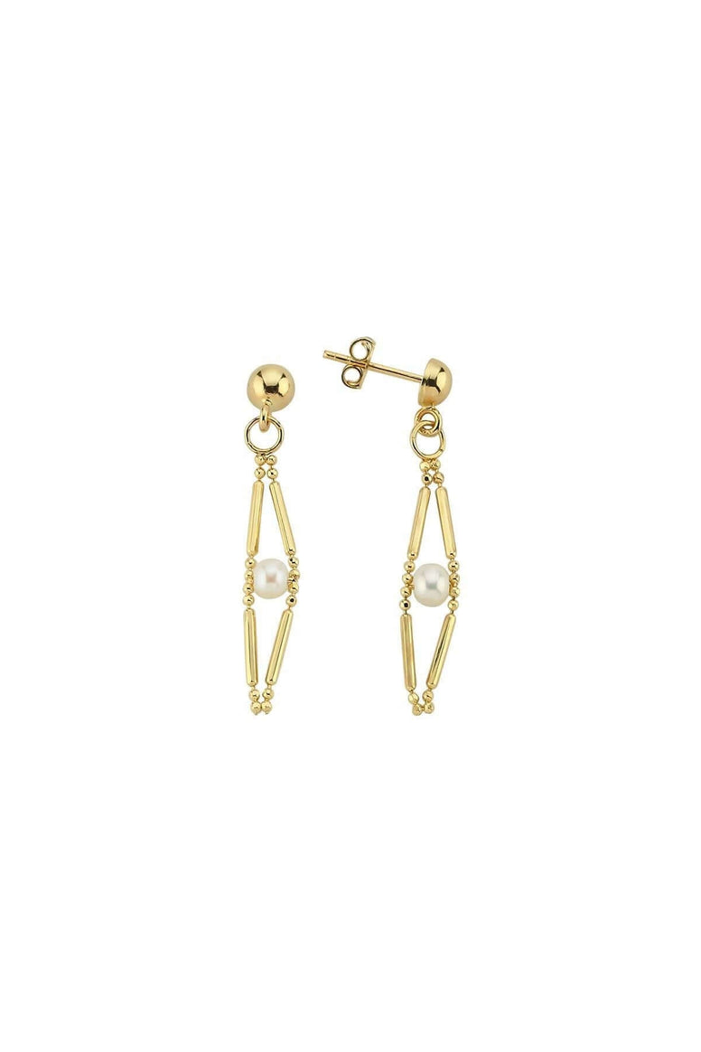 Product name 14K Gold 6 mm Slice of Baklava Doriko Toplu Doğal Pearlli Küpe