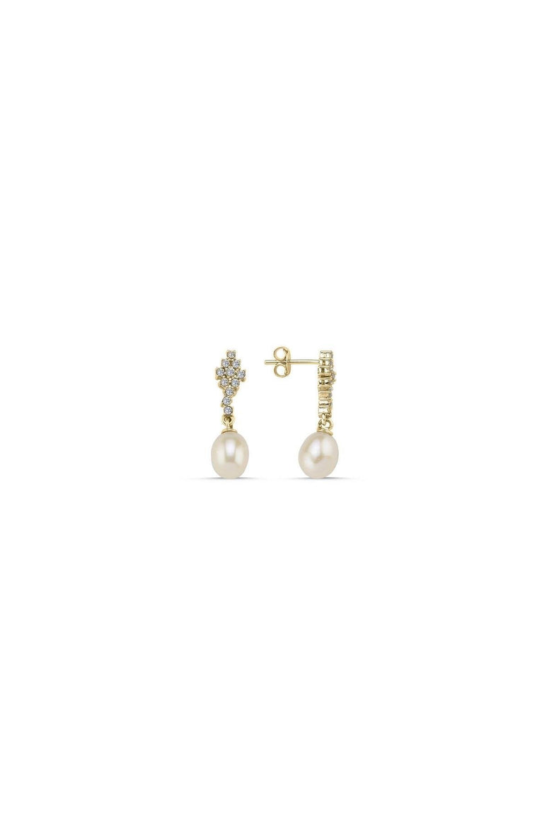 Product name 14K Gold 7 mm Dörtgen Taşlı Doğal Pearl Sallantılı Küpe
